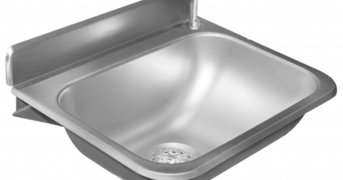 Naadloos geperste opbouwwasbak met spatwand, geleverd met afvoerplug, RVS gaatjesrooster 1¼” en sifon. Incl. kniebedieningsset Tempo bestaande uit zelfsluitende klep, wateruitloop, mengkraan, 3 flexibele slangen en afdichtingen.