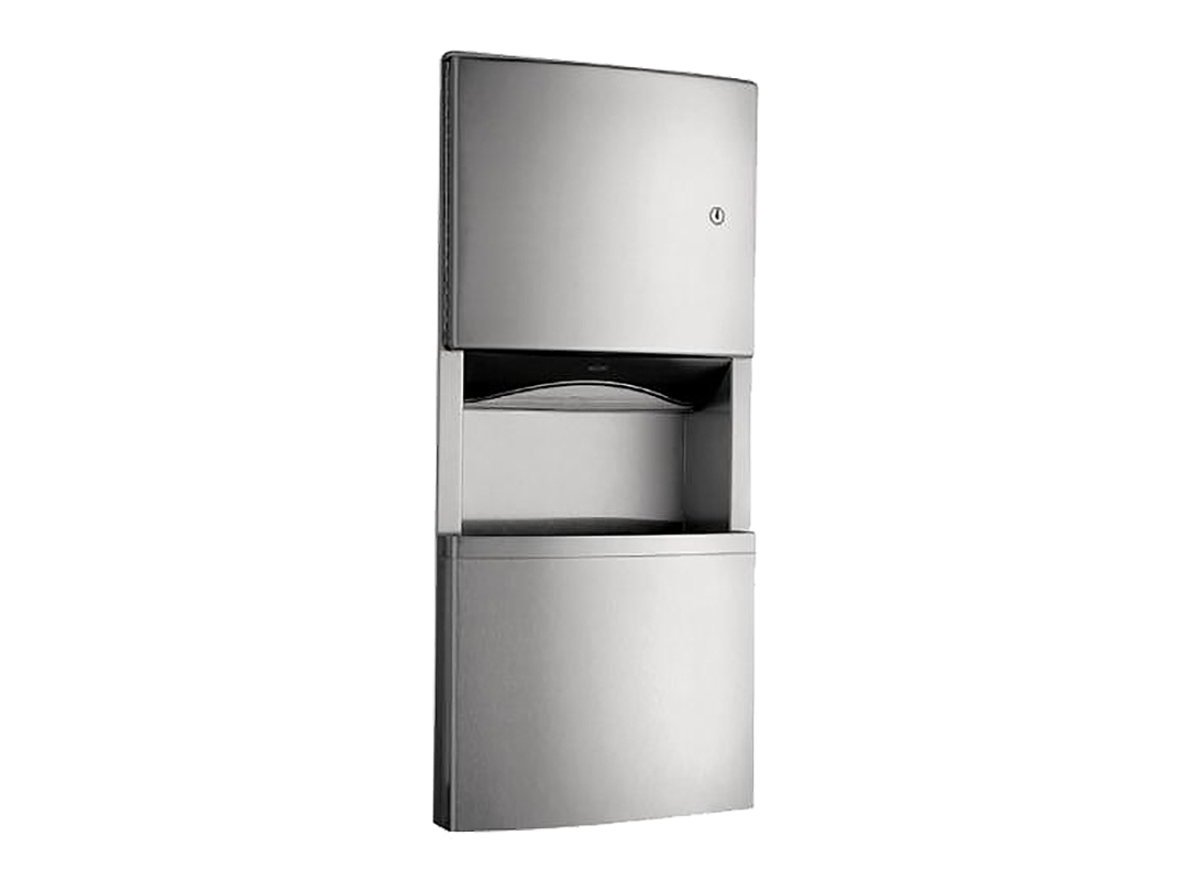 Contenance 350 à 475 serviettes avec réceptacle poubelle de 11L. Façade amovible pour le nettoyage. Serrure cylindrique.