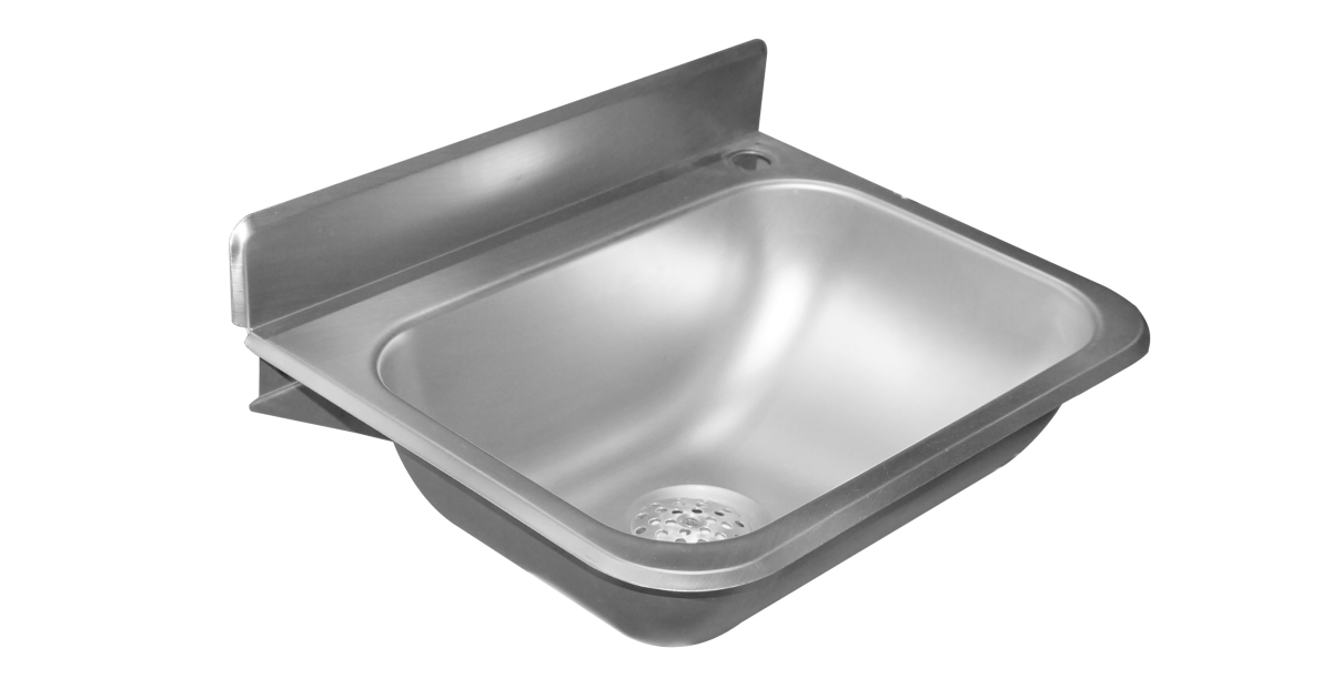 Naadloos geperste wasbak voor wandmontage met spatwand.
